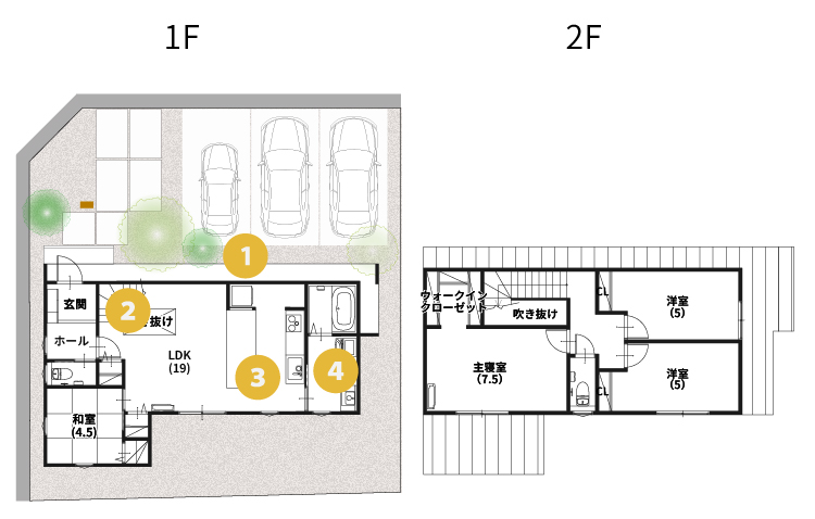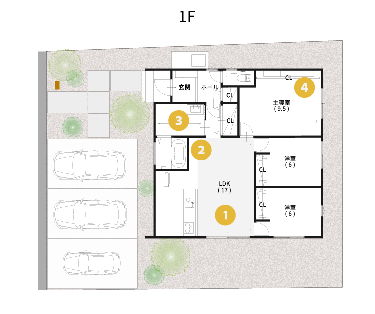 □ 延床面積:99.78㎡ (30.17坪) □ 建築面積:64.31㎡ (19.45坪)