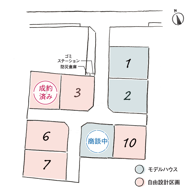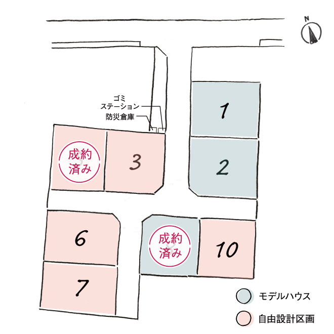 | ゴミステーション | 3号地北側 ( その他用地 2 ) 市が8件入居しないと収集不可の為、業者回収。 業者回収:毎月2,530円 お客様の口座引落になります。 |