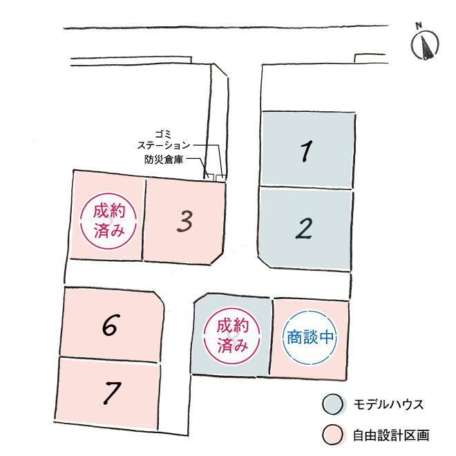 | ゴミステーション | 3号地北側 ( その他用地 2 ) 市が8件入居しないと収集不可の為、業者回収。 業者回収:毎月2,530円 お客様の口座引落になります。 |