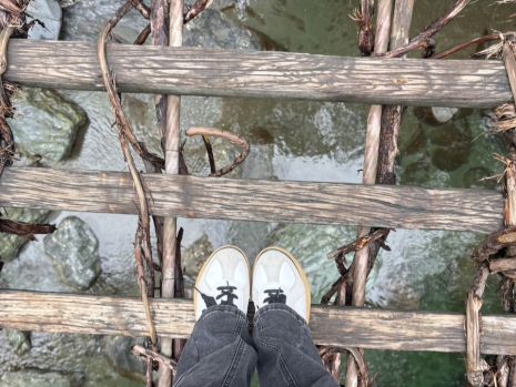 足元の板の感覚が広く、スリル度が想定と桁違いでした😧