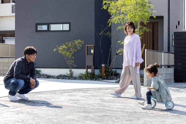 見通しの良い道路計画や、外からの視線を遮りながらも開放感を感じられる植栽配置など、住む人が安心して子育てできる環境が整っています。